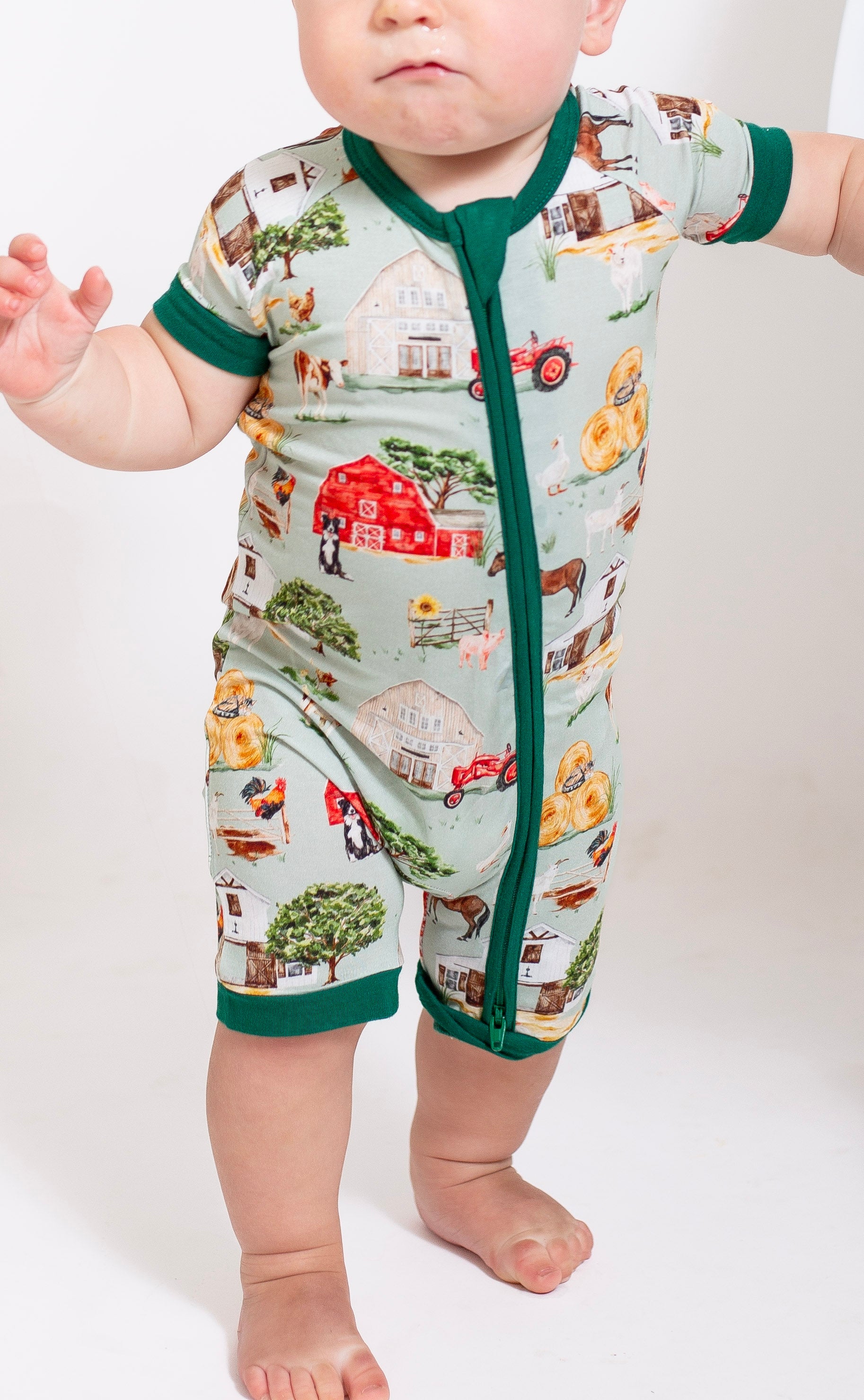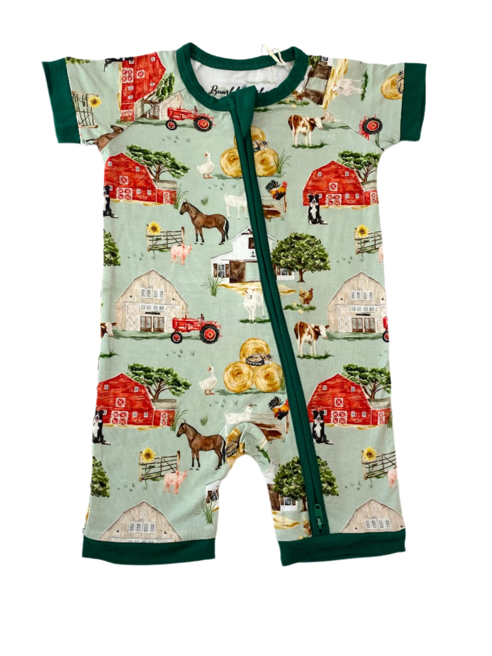 This print features animals on the farm: Chickens, horses, goats, cows, pigs, and more! These are the perfect thickness for buttery soft jammies.