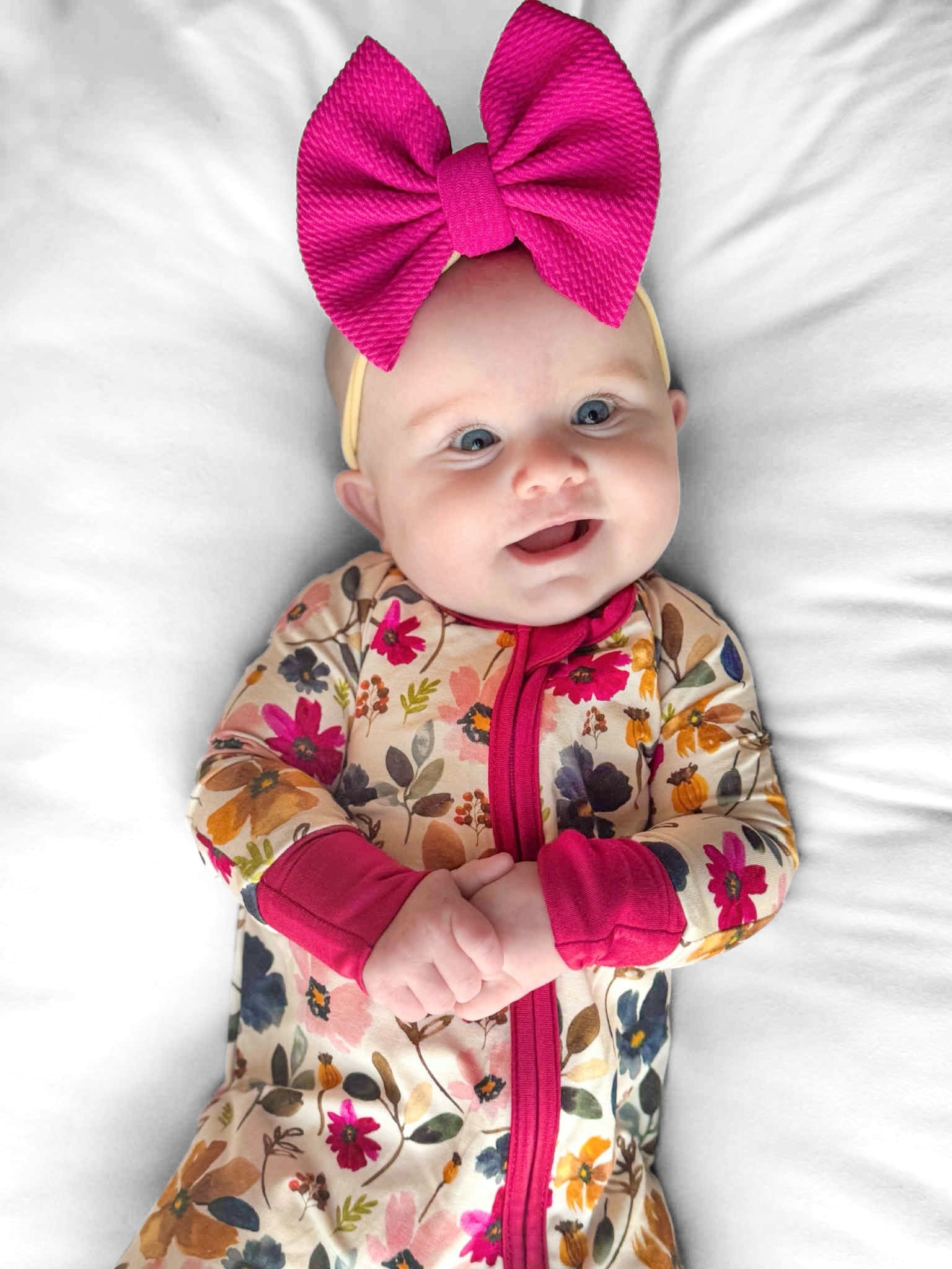This watercolor floral features blossoms in gold, navy, pink, and magenta. Classic and dainty, perfect for your baby girl! These are the perfect thickness for buttery soft jammies.