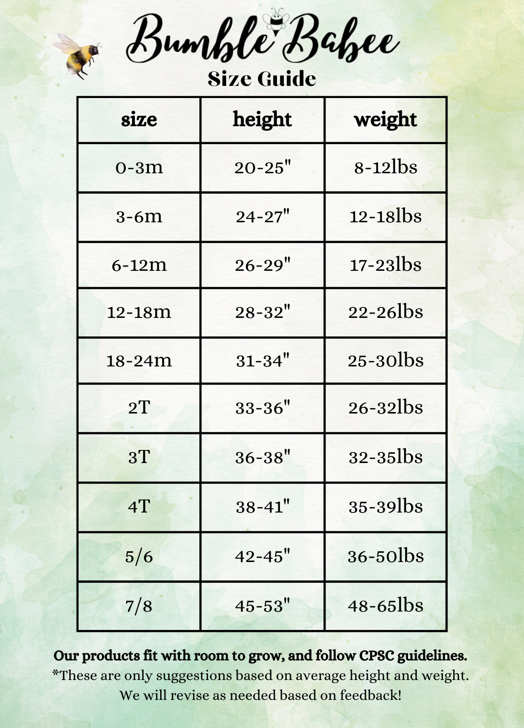 *Please use our charts as a guide, keeping in mind that bamboo is known for its STRETCH and longer wear!*