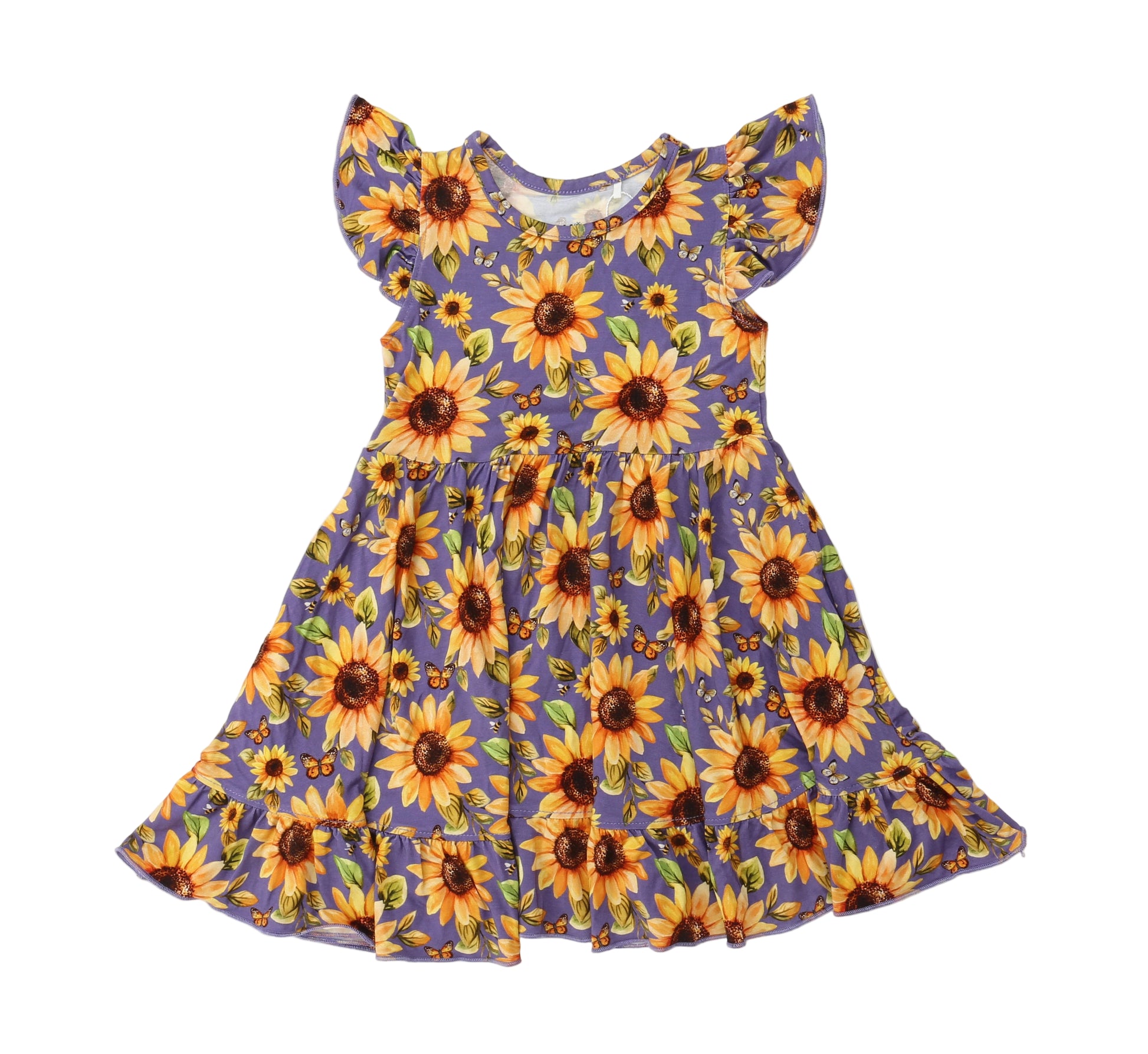 This print features sunflowers on a moody violet. Butterflies and bees flutter among the flowers, creating a whimsical design. These are the perfect thickness for buttery soft jammies.